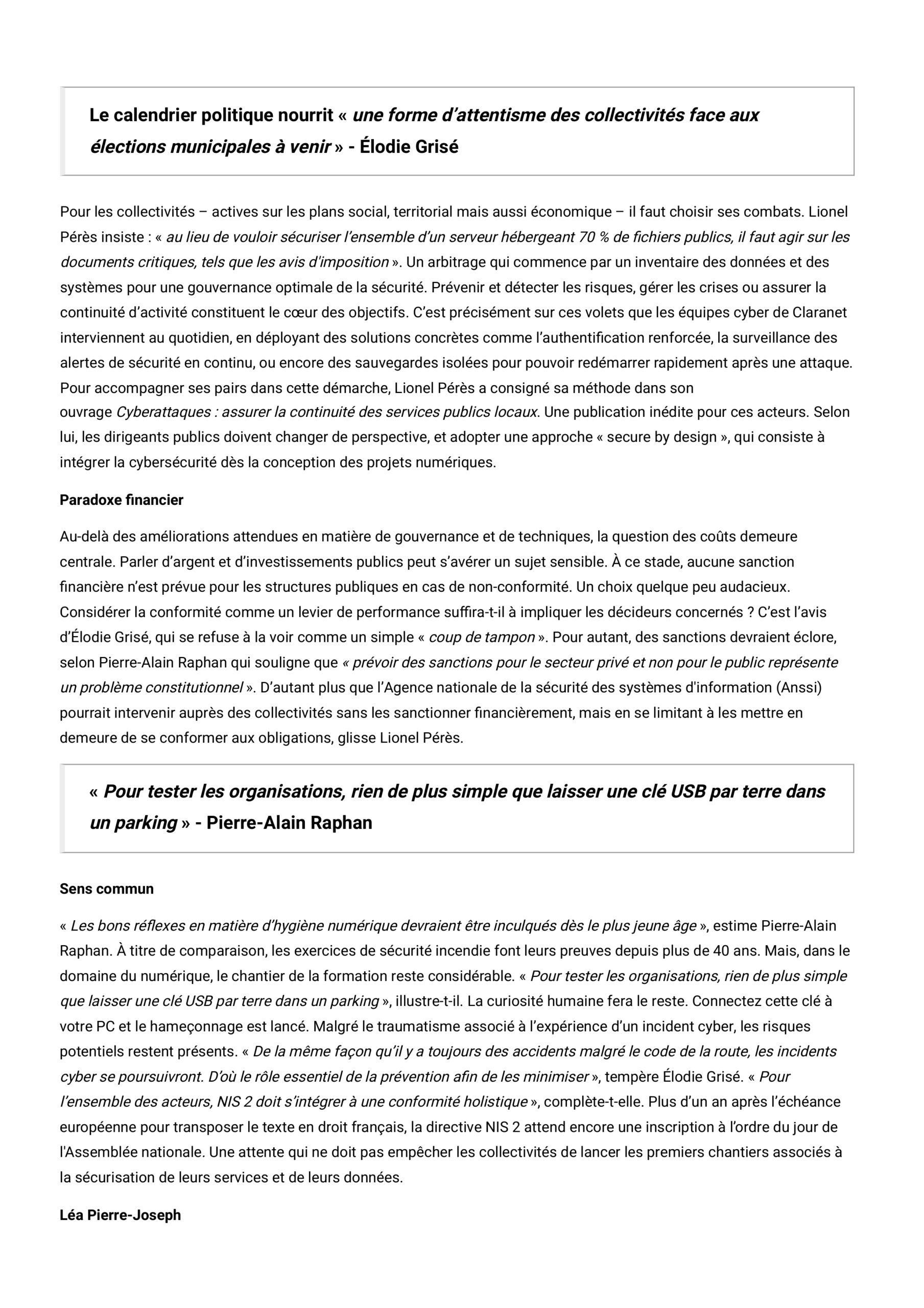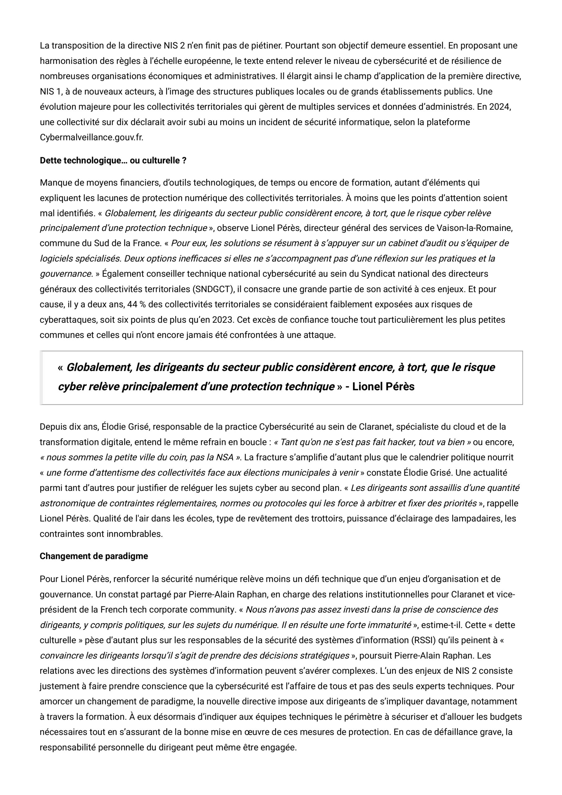 « Globalement, les dirigeants du secteur public considèrent encore, à tort, que le risque cyber relève principalement d’une protection technique »